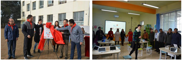 揭牌仪式上,石琳向中信银行信用卡中心赠送了锦旗,并与陈大龙、范文波、李昭华共同为梦想中心揭牌,中信银行信用卡中心向教体局捐赠了电脑设备。