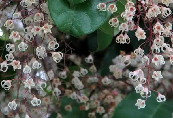 苹婆为常绿乔木。叶近革质,长圆形或椭圆形。花萼初时乳白色,后变为淡红色,5枚裂片在顶端联合。蓇葖果成熟时鲜红色,长圆形,顶端有喙,种子黑褐色。