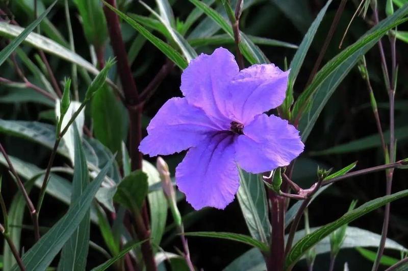 叶线形,花冠漏斗状,5裂,具放射状条纹,细波浪状,多蓝紫色,少数粉色或白色。单花寿命短,清晨开放,黄昏凋谢。