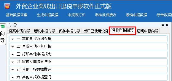 进入离线申报系统,选择“向导→其他申报向导”(见下图)后,按以下流程操作: