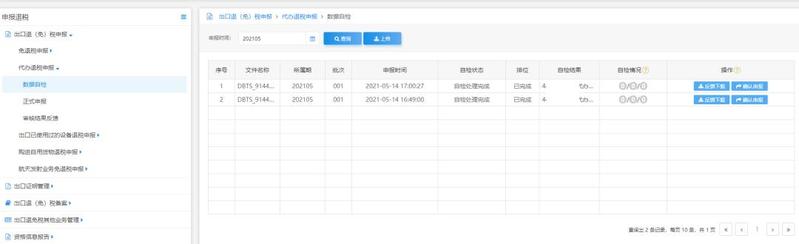 然后打开电子税务局“我要办税→出口退税管理→出口退(免)税申报→出口退税自检服务→代办退税数据自检”进行如下操作: