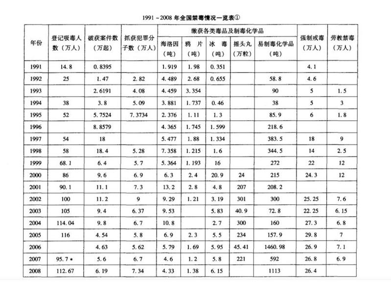 1991年至1997年期间,全国公安机关查破毒品案件41.3万起,抓获涉案违法犯罪人员56.8万名,缴获海洛因26.9吨,鸦片14.4吨,缴获企图走私出境的易制毒化学品923吨。与之相伴的是1949——1980年人民警察年均牺牲32人,1981——1989年急剧上升,最高达到年牺牲254人,年均为131人,是建国后前30年年均牺牲人数的4倍之多。1990——1995年最高达到年牺牲395人,年均为341人,大大高于上世纪80年代的牺牲人数,其中很多民警都是倒在了禁毒战线上。