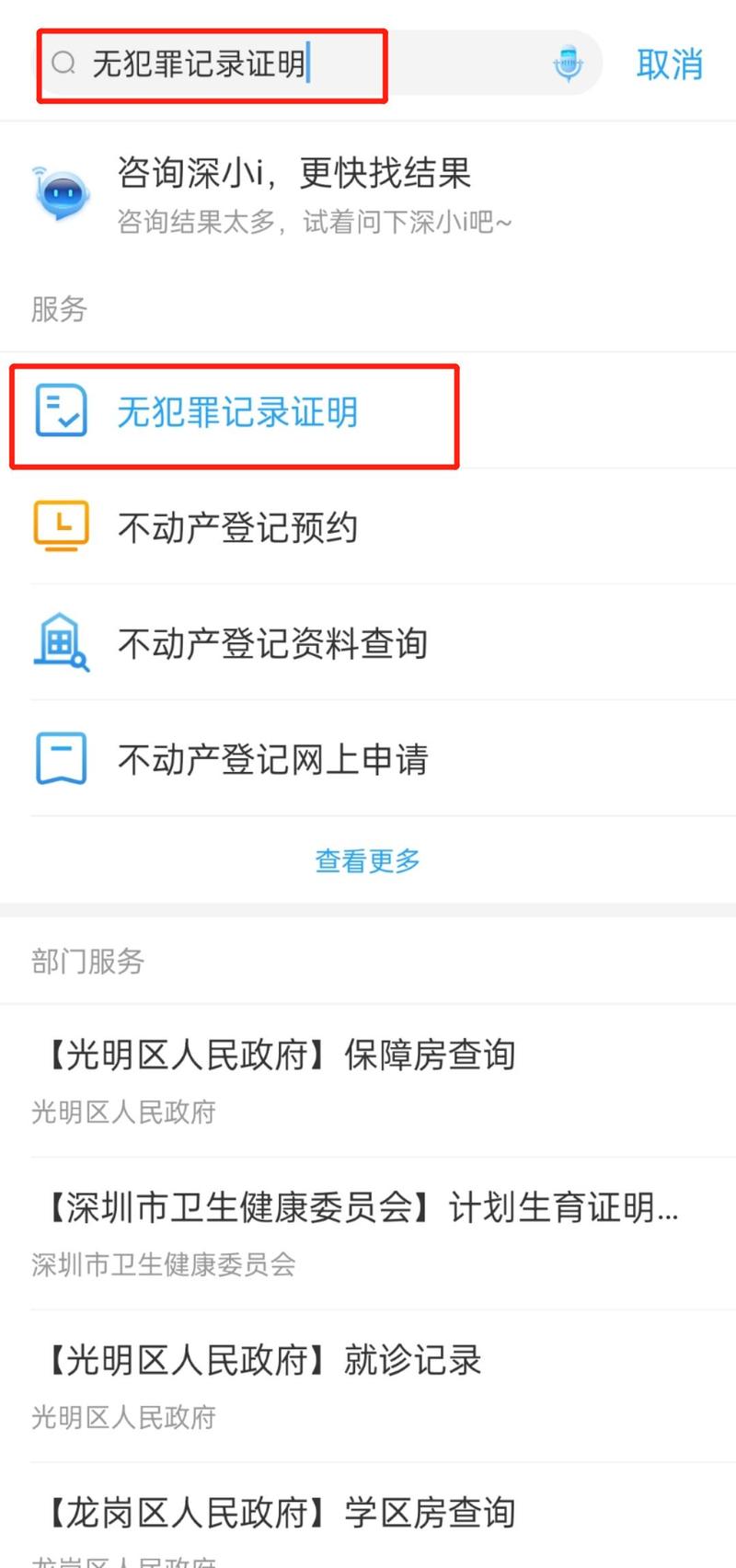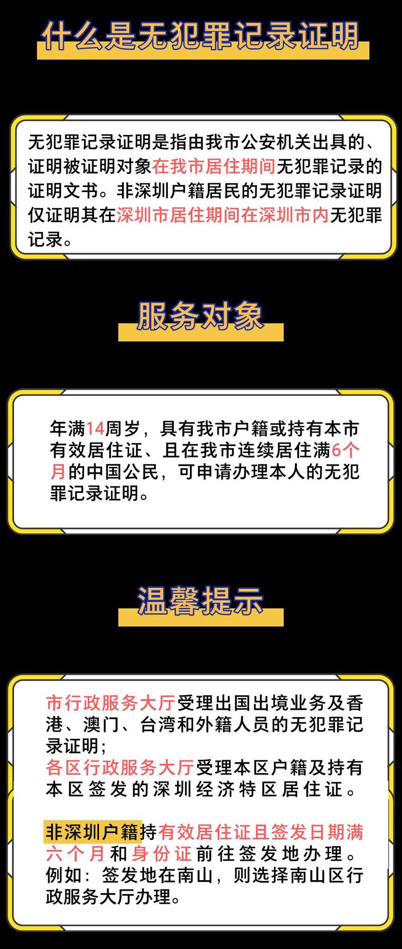 关注“深圳公安”微信公众号,菜单栏点击政务服务,申请无犯罪记录证明。