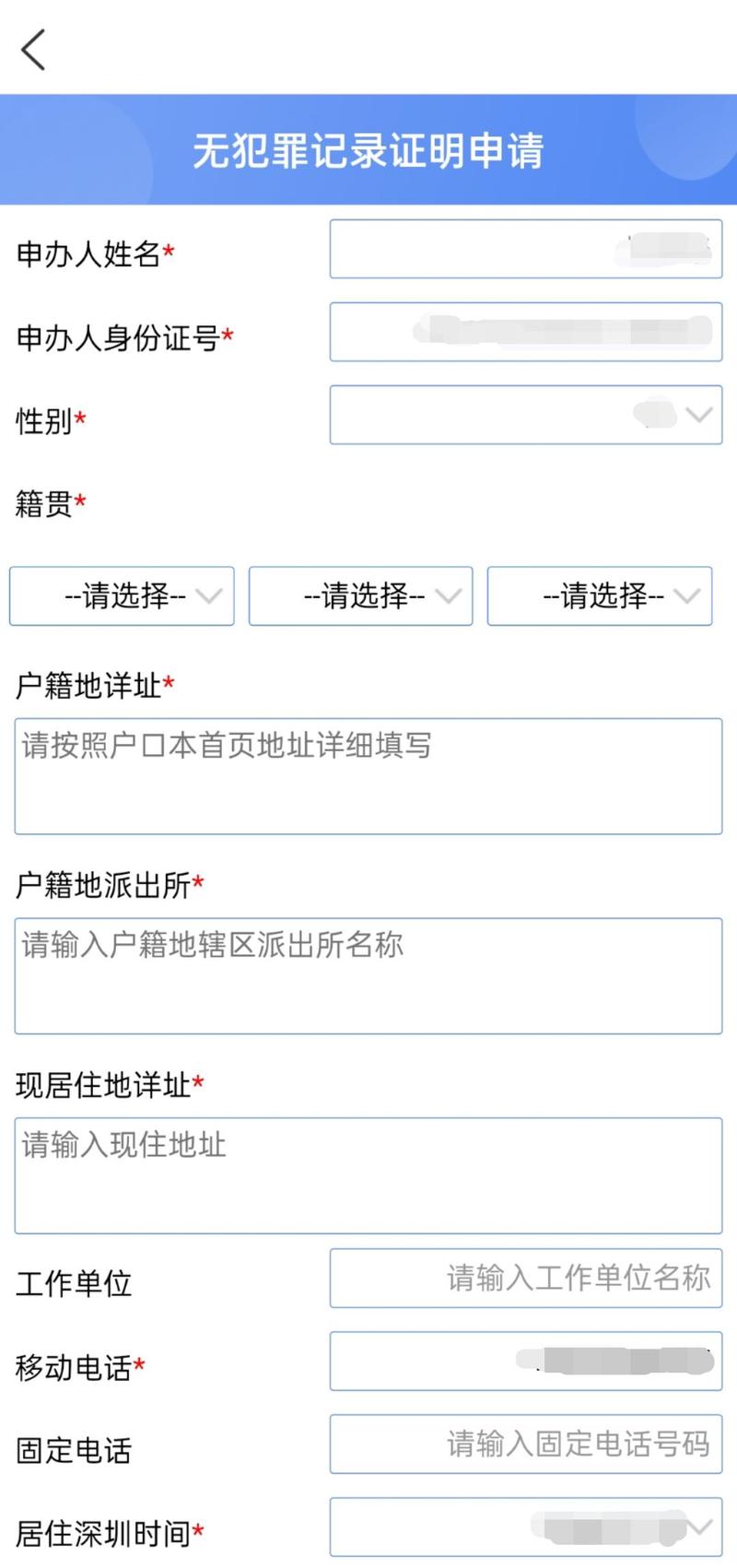 手机下载并登陆“i深圳”App,完成实名认证,搜索“无犯罪记录证明”,浏览“无感申办知情同意书”,根据自身户籍情况选择“办理情形”,填写“无犯罪记录申请”相关内容,并提交电子材料,点击“预览”,确认无误后点击提交。