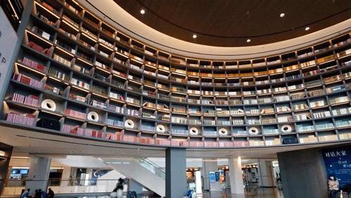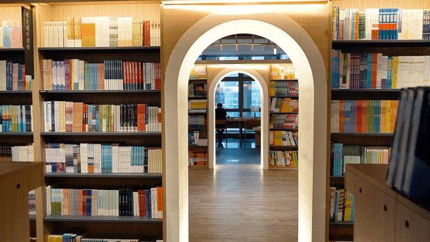 跨越两层楼高的书墙收藏有超8000本书,宛如置身于书海中。