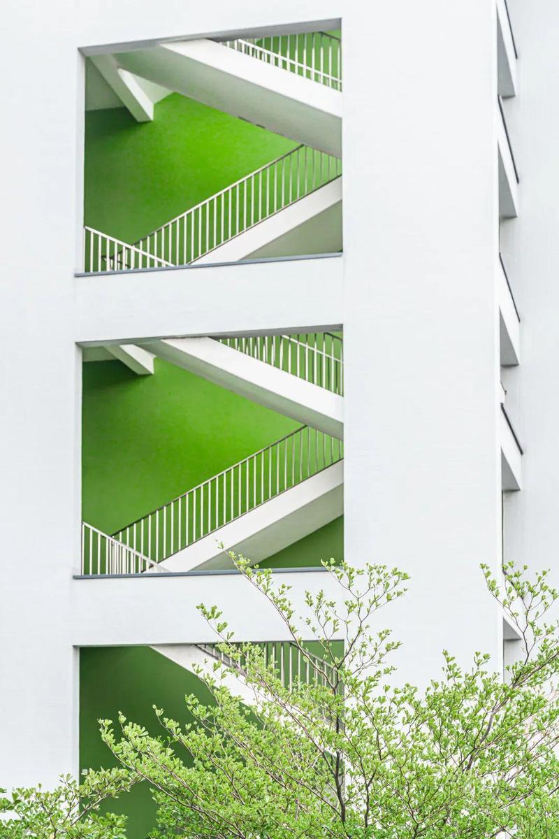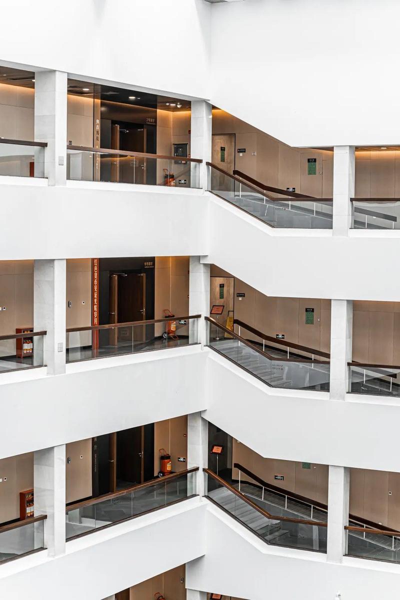位于光明图书馆中庭的纯白色旋梯,简约留白设计,赋予无限想象空间。
