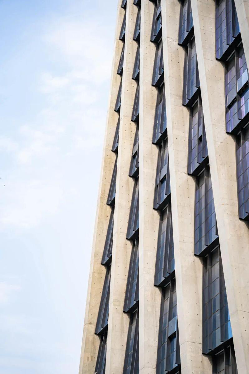 坪山图书馆在整个建筑群中最为独特,一共十层楼高,外观如折叠的书卷。