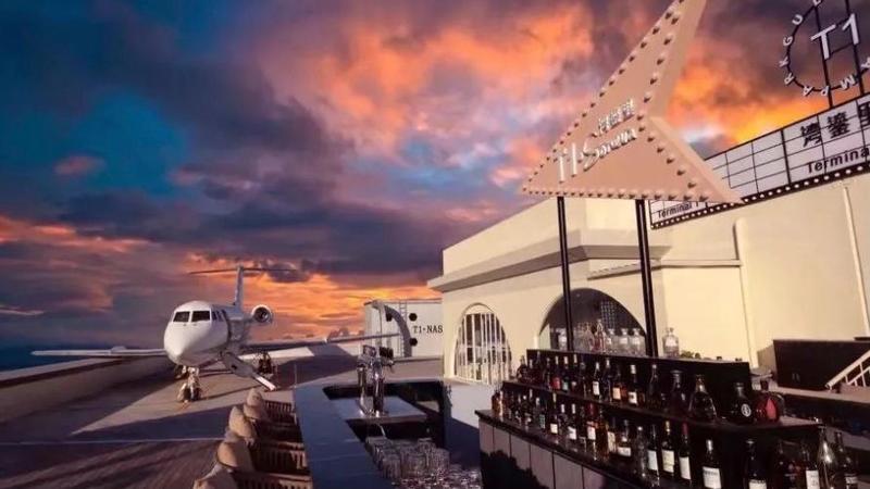 全球首家私人飞机潮玩基地、天台PARTY影院酒吧,50多个室内外打卡场景,提供私人飞机下午茶、机长服换装、专业摄影团队、直升机空中游览项目。