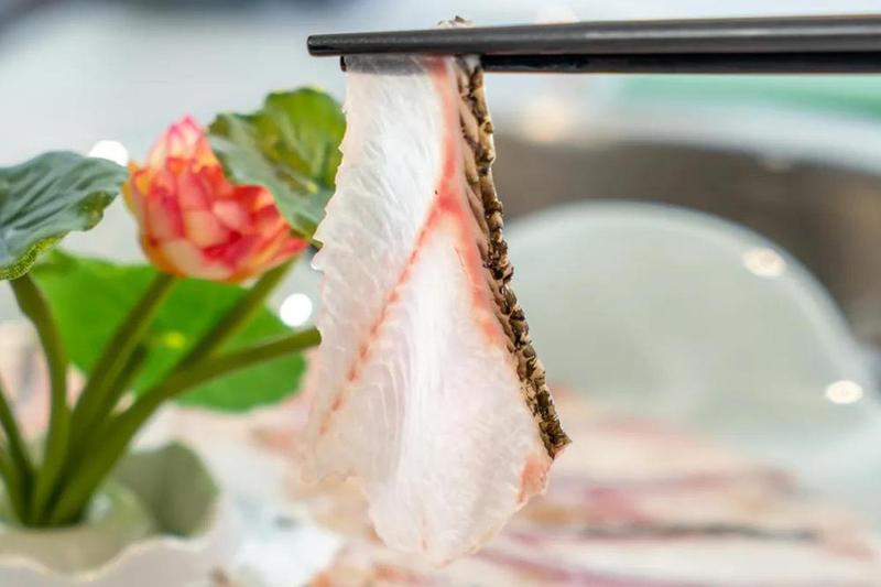 马家斑鱼鲜鱼火锅,吃的就是鱼肉的“鲜”和“薄”。店里用的鱼每天送达,现杀现切,鱼片出品薄如蝉翼、能透光,只需涮烫3秒就能吃,要记得配上店里配斑鱼的特制酱料,能最大限度吃到鱼的鲜味。