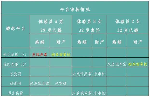 然而在线下门店体察调研时,2个样本中的体验员均为已婚身份,调研时以未婚状态购买其服务,并没有如客服所说的“认证核实完了之后才能充值办会员”。珍爱网的2名体验员均只提供了身份证就完成线下收费服务的购买,直至体验员完成第一次相亲,也未被查出婚姻异常状况。且调研中也未被强制要求提供房产和车辆证明复印件、收入流水证明等资料。世纪佳缘不同门店对于会员婚姻状况的审核也不尽相同,其中,世纪佳缘A店在会员缴费后隔日查出体验员婚姻状况有异,但是B店并未查出任何不妥。