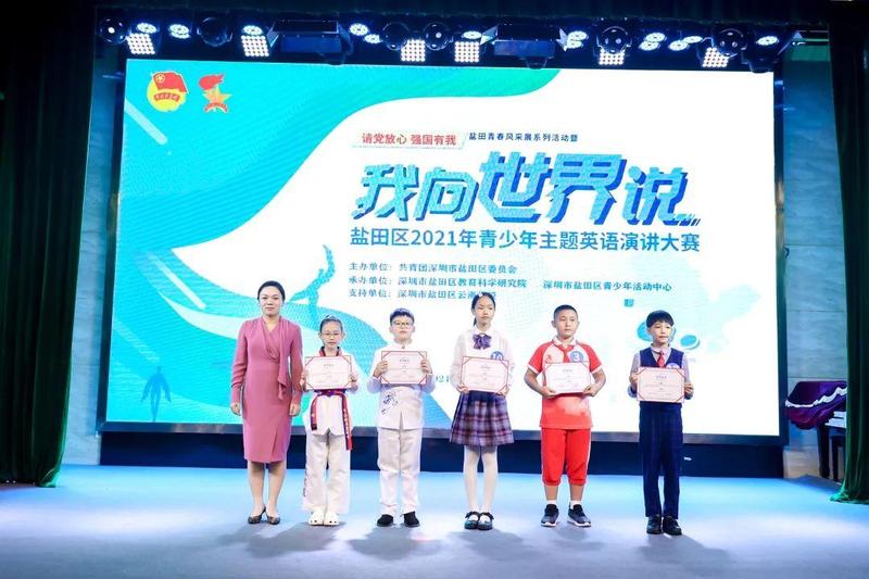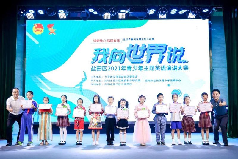 10月10日,“请党放心 强国有我”盐田青春风采展系列活动暨盐田区2021年青少年“我向世界说”主题英语演讲大赛决赛在深圳市盐田区云海学校成功举办。共青团盐田区委员会书记傅瑜、副书记林芳,盐田区教育局党组成员、副局长叶菲,盐田区教育科学研究院院长李天才、副院长陈尚宝出席了本次活动。