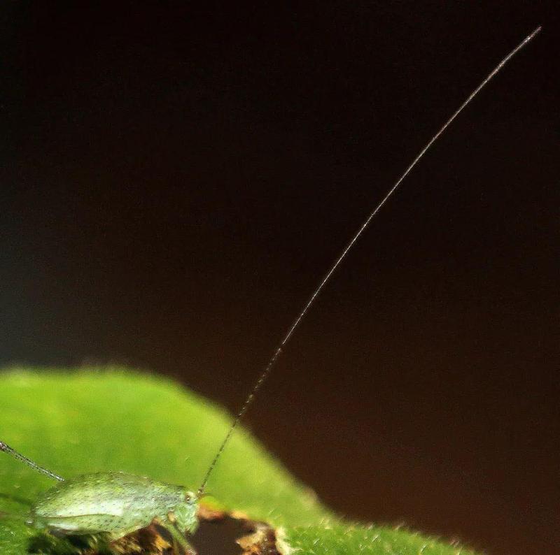 ▲ 螽(zhōng)斯细细的触角最为飘逸,长度是身体的数倍。