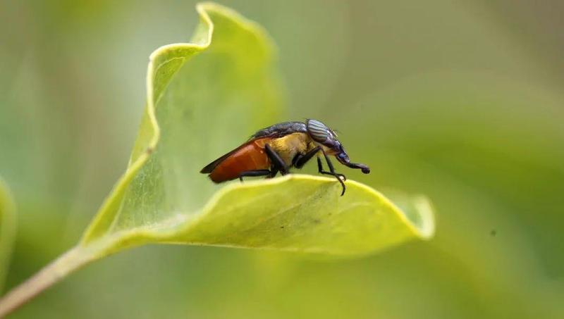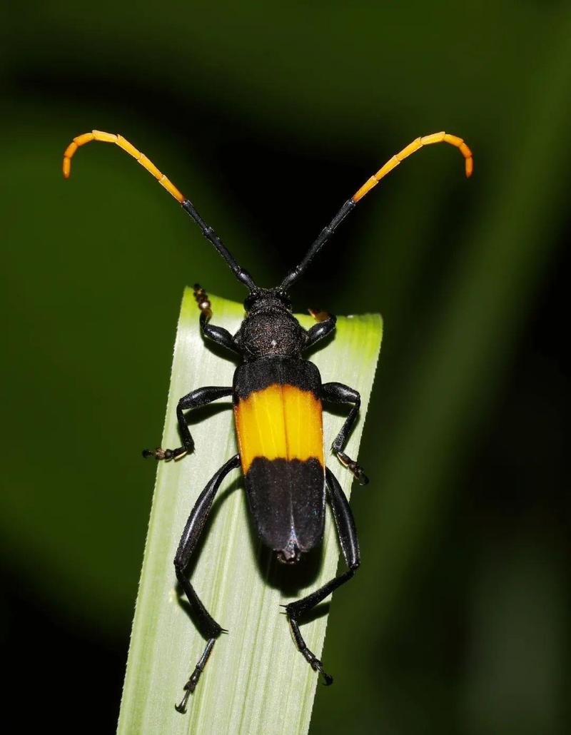 触角是昆虫的主要感觉器官,形状各异的触角有味觉、触觉和嗅觉,是昆虫的鼻子、舌头和耳朵,是与同伴交流的工具,是探测外部环境的“雷达”,可以感应到空气中极小的粒子,在觅食、求偶和逃避天敌时作用巨大。