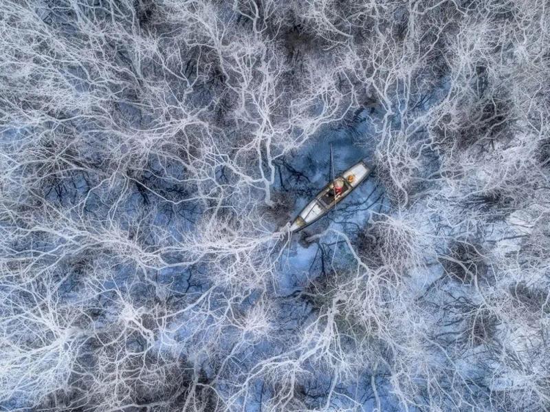 今年无人机摄影奖的获奖照片,捕捉到了令人眼花缭乱的奇妙世界。从高处看,越南一片鲜绿色的草地,看起来像人造毛皮。而哈萨克斯坦的一个结冰水库,就像碎掉的玻璃碎片。