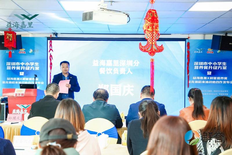 会议开场由益海嘉里深圳分餐饮负责人郑国庆先生介绍益海嘉里的历程并对鲜誉营养餐出品表示肯定,随后鲜誉总经理严资旺先生叙述了在营养餐升级过程中的努力,通过营养师和专业博士对营养餐数据和内容的讲述,让在座的家委代表们更加了解了营养餐升级的必要性和可行性。益海嘉里稻米油项目的张波先生和朱若维女士以视频的方式讲述了金龙鱼稻米油的来源以及荣誉,目前金龙鱼稻米油已经在日本上市多年并作为中小学生指定用油长期使用。此外,发布会现场还举行了益海嘉里与鲜誉战略合作的授牌及剪彩仪式。