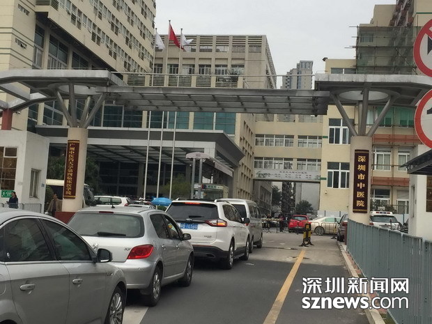 每个工作日早高峰时段,排队进入深圳市中医院的车辆排起了长龙
