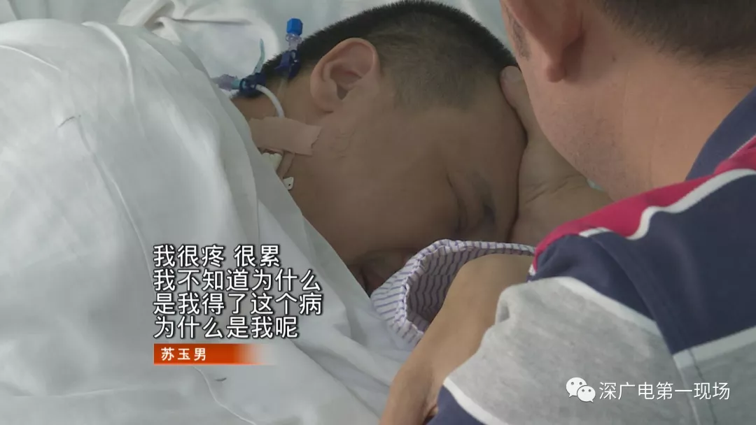 昨天中午,记者来到位于广州的中山大学附属第一医院,在脊柱外科的病房里见到了苏玉男,此时他侧身躺着,虽然这两次手术很成功,但由于欠费太多,恢复期只能保守治疗,没有得到很好的药物控制,有些感染的他,正在发高烧,他的手紧紧握住病床护栏,神情十分痛苦。
