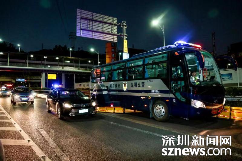 深圳交警潮汐作业车辆正在工作