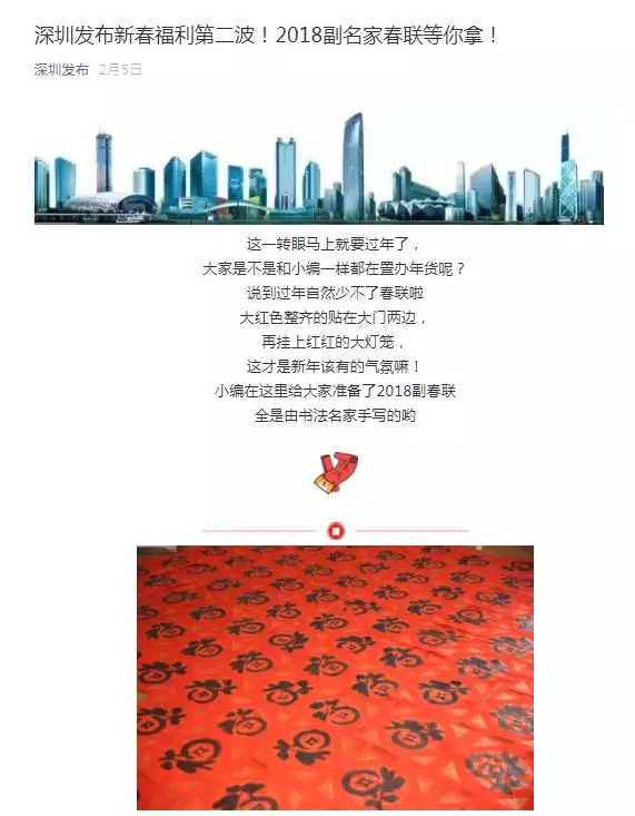 春节前后,许多人踏上回家路时。“深圳发布”的小编们在“送春联”,春节当天还在推送信息。