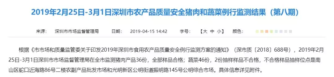 “2019食用农产品抽检第八期”