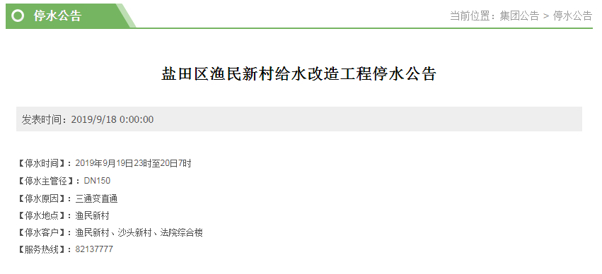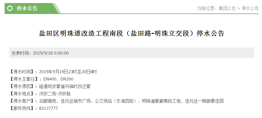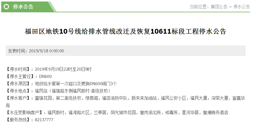原标题:做好准备!19日至20日福田、盐田这些地方将停水
