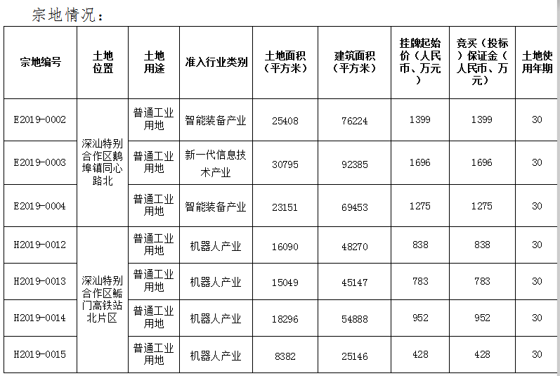 当天,深圳市土地房产交易中心发布公告,受深圳市规划和自然资源局深汕管理局委托,将以挂牌方式公开出让位于深汕特别合作区的E2019-0002等7宗地使用权。挂牌期自2019年11月25日起至2019年12月4日15时止。宗地情况如下: