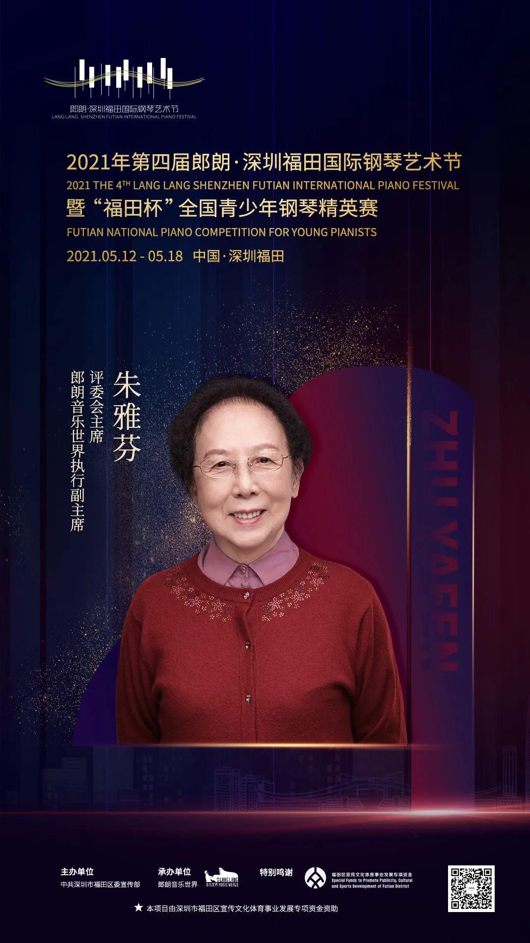 朱雅芬,国际著名钢琴家,教育家。1954年毕业于上海音乐学院钢琴系。1953年至1956年参加由中央文化部组织的艺术团赴欧洲10余国访问演出。沈阳音乐学院钢琴教授,担任本科及研究生的教学,并任钢琴系主任。多次在全国及国际钢琴比赛中担任评委。从教几十年来培养了大批钢琴专业人才,其中有的在国际国内重大比赛中获奖,有的成为各艺术院校的教学骨干。所录制的《儿童钢琴讲座》1989年出版。所翻译的《钢琴踏板法指导》(美国钢琴家约瑟夫.班诺维茨著)1992年出版。1991年至1992年,及1998年应邀到美国七所音乐学院讲学及演奏,介绍中国钢琴音乐及中国钢琴教育。1994年由美国传记研究院列入《5000位世界名人录》,2002年入选剑桥世界传记中心的《2000位二十世纪杰出音乐家》。2013年全国钢琴学会授予“中国钢琴艺术杰出贡献奖”。2011年起任郎朗音乐世界执行副主席。