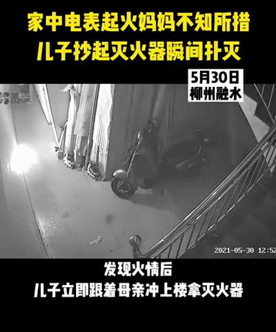 #家中起火妈妈慌乱10岁儿子冷静救火#