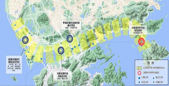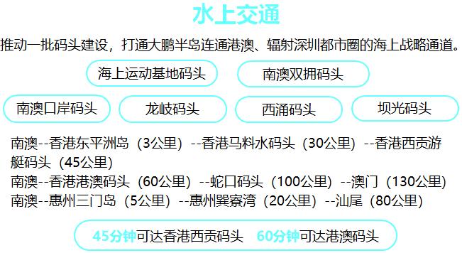 近期携手香港构建以世界级滨海生态旅游度假区、世界文明交流互鉴平台、国际特色赛事胜地为核心的生态康乐旅游圈,谋划建设坝光海洋科教城;远期联合香港力争打造大鹏湾国际对外交往综合基地。