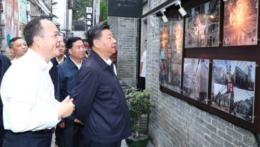 24日下午,习近平在广州考察,来到荔湾区西关历史文化街区永庆坊。广彩、广绣、粤剧……一条老街,一间间老店铺,仿佛一幅徐徐展开的画卷。