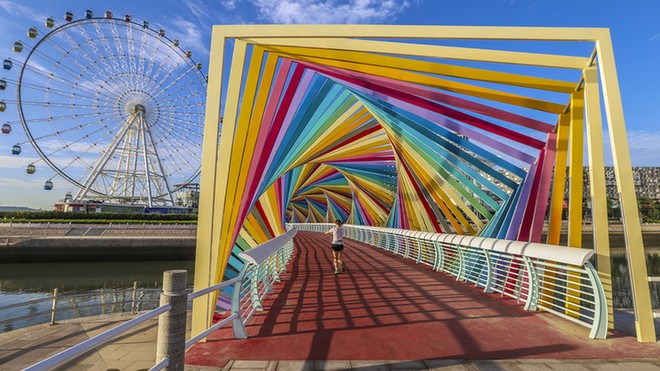 “七彩桥”亮相青岛 色彩斑斓宛如童 ...
