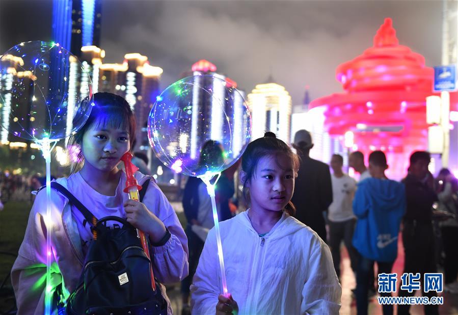 6月17日,两名小女孩在青岛五四广场游玩。当日是端午小长假第二天,山东青岛各景区迎来大量游客。 新华社记者 李紫恒摄
