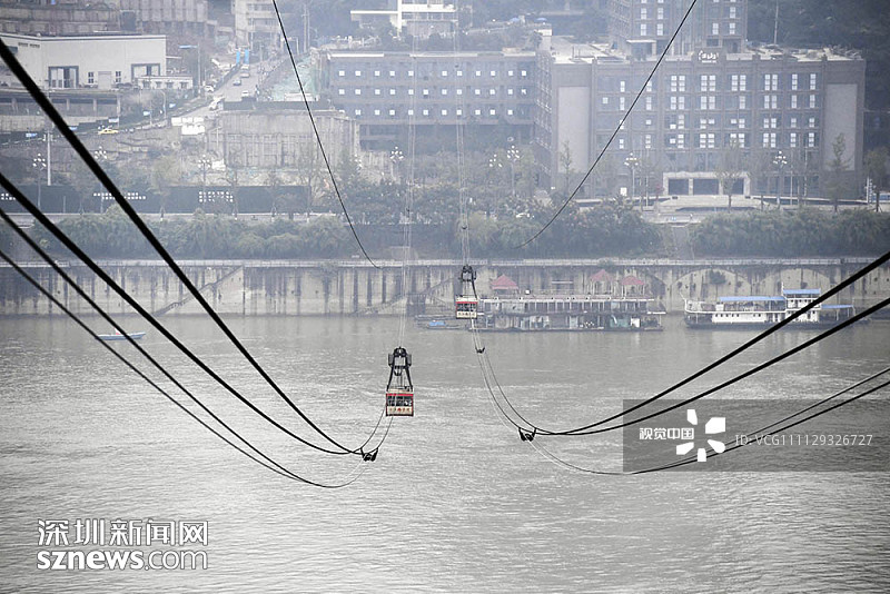 重庆洋人街景区内的穿楼观光索道吸引不少游客体验。据悉,跨度长1000米的观光索道将随着洋人街的拆迁而搬离。中新社记者陈超 摄