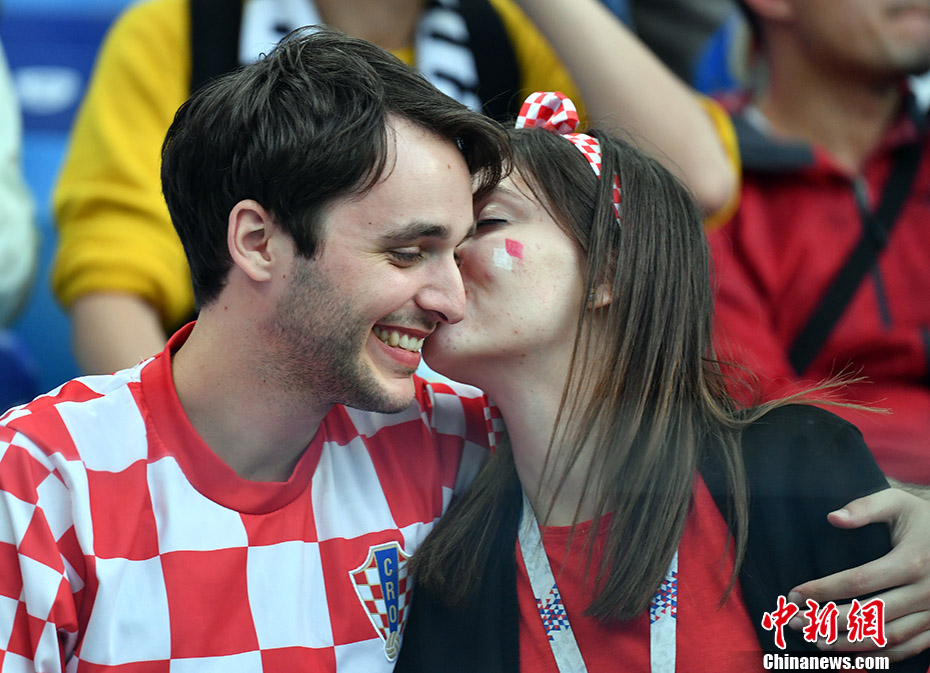 北京时间6月22日凌晨,2018俄罗斯世界杯D组次轮阿根廷队与克罗地亚队的较量在下诺夫哥罗德打响。凭借下半场的三粒进球,克罗地亚3-0战胜夺冠热门阿根廷队,小组积6分提前晋级16强,阿根廷队小组出线形势艰难。中新社记者 毛建军 摄