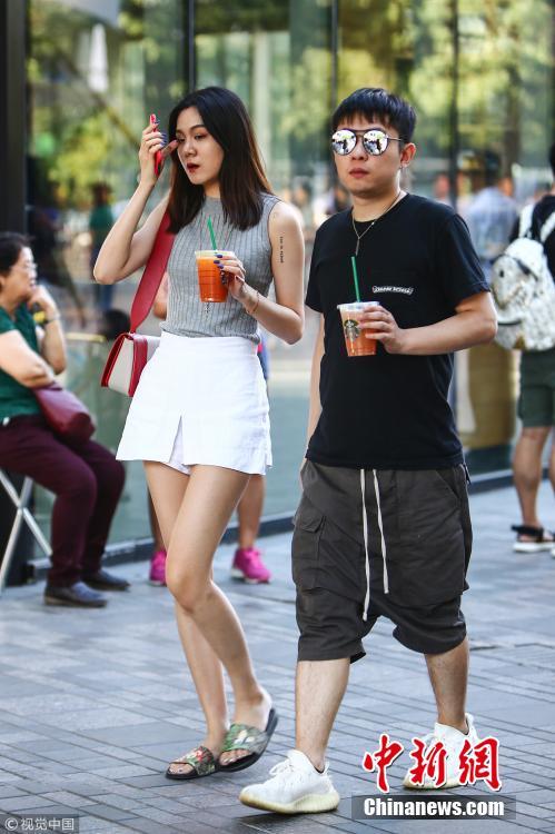近日,北京连续迎来高温天气。街头民众选择清凉出行,成为酷热天气中的一道风景线。 图片来源:视觉中国