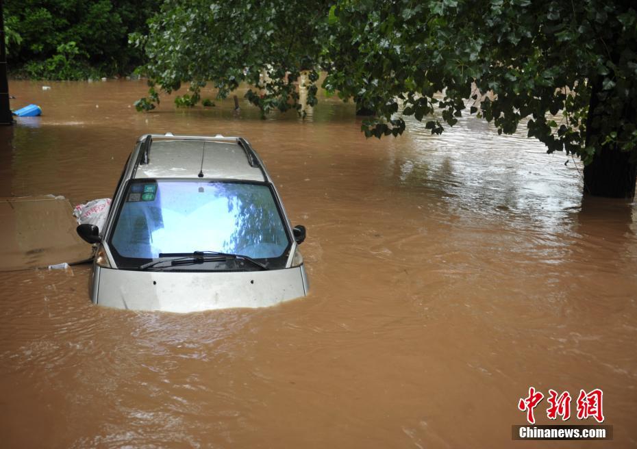 7月2日,成都蒲江县境内遭遇大暴雨和洪水袭击,大量果树、农田、民房等进水被淹,灾害致14082人受灾,紧急转移被困民众9565余人,直接经济损失约3426.46万元人民币,暂未收到人员伤亡报告。图为成都蒲江县寿安镇一辆小车泡在洪水中。中新社记者刘忠俊 摄