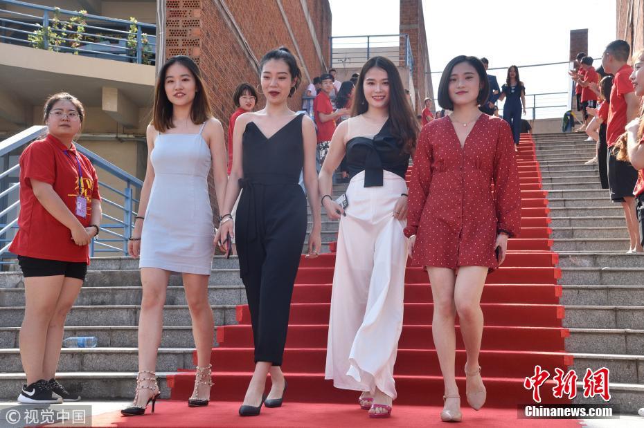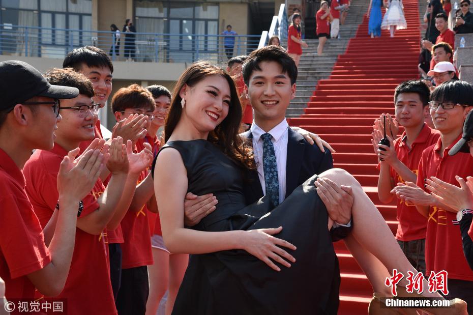 6月11日,位于南京的中国传媒大学南广学院举行毕业启程礼,大四毕业生齐聚走红毯,俊男靓女身着盛装,彷如一场明星大咖秀。贾世清 摄 图片来源:视觉中国