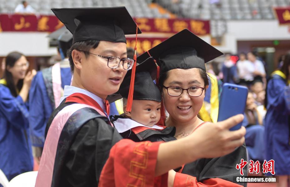 山东大学举行毕业典礼 博士夫妇带娃庆毕业