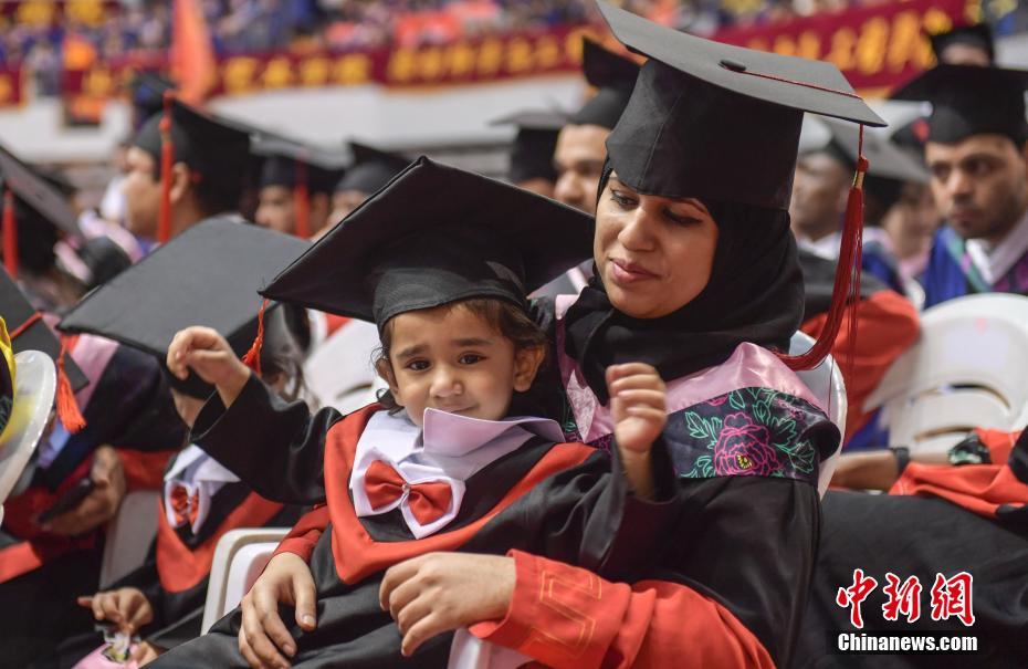 6月23日,“小博士”在博士妈妈怀中撒娇。当日,山东大学2018年毕业典礼暨学位授予仪式在济南举行。 中新社记者 张勇摄