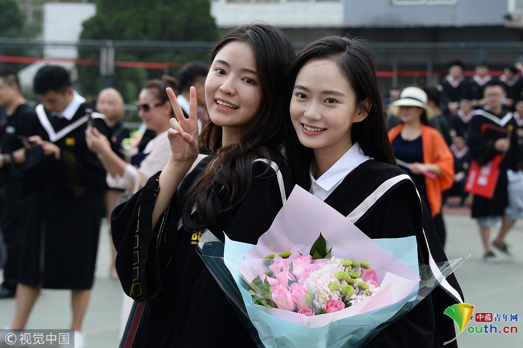2018年6月27日,北京,中国传媒大学2018届毕业典礼暨学位授予仪式在校园大学生活动中心举行,高颜值毕业生抢镜。