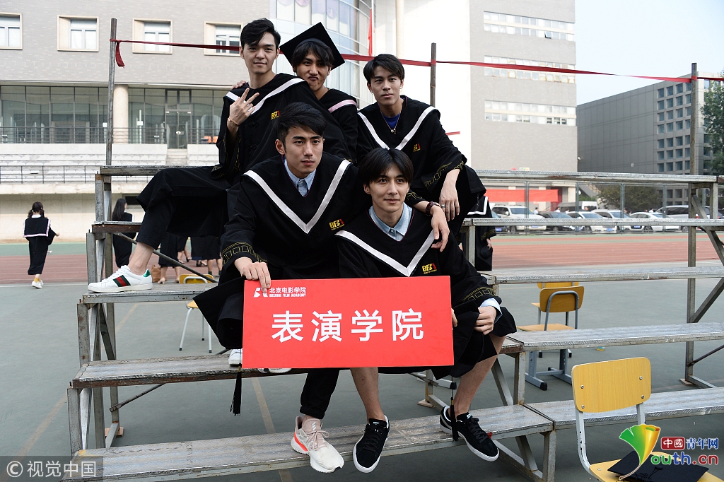 2018年7月4日,北京,北京电影学院举办2018届毕业典礼,毕业生穿着学位服拍摄大合影,现场帅哥美女云集。