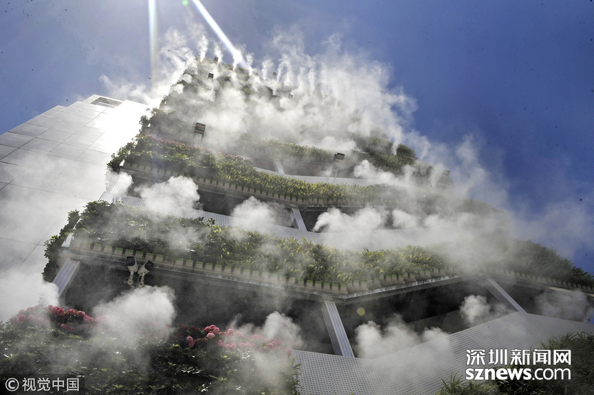 相关链接 10层高楼长满绿植“仙气飘飘” 这座建筑在抖音火了! 深圳新闻网讯 2018年6月10日,西安,高楼外长满绿植,还萦绕着雾气。这段只有6秒的短视频在抖音火了,网友评论这是“第四代住房”,其实这是西安市众创示范街区的一处安装了智能雾森系统的西北最大户外垂直绿化。 夏天能区域降温5℃至10℃ 还可有效抑制PM10 “仙气飘飘”、“西安天气有多热,房子都冒烟了”,这是一段抖音小视频里网友的评论留言。视频中一栋10层高的楼外侧楼梯处挂满了绿植,同时绿植上方还有喷雾。蓝蓝的天空当做背景,引来不少人上前拍照,配着背景音乐的确让人感觉清凉无比。
