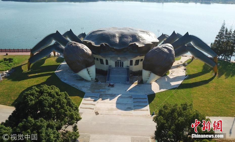 据了解,这是建造中的大闸蟹生态馆,预计未来将在大闸蟹的白肚内容纳三层空间,集休闲、娱乐,以及有关大闸蟹体验于一体的设施。图片来源:视觉中国