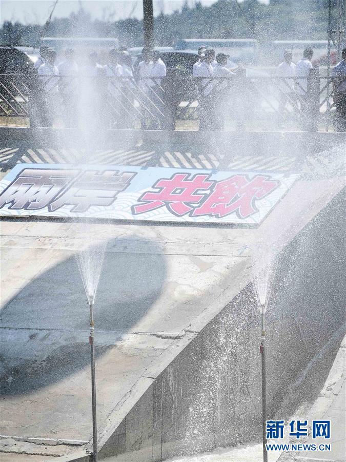 8月5日,福建向金门供水工程通水现场会在福建晋江举行。当日上午,福建向金门供水工程实现正式通水。福建向金门供水工程由晋江龙湖取水泵站、陆地输水管道和跨海输水管道三部分组成,线路总长约28公里,设计流量3.4万立方米/日,工程总投资3.88亿元人民币,水费按9.86元新台币/立方米计价。新华社记者姜克红摄
