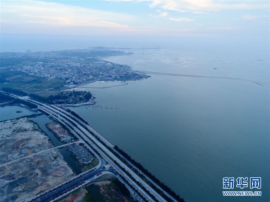 这是8月4日拍摄的福建向金门供水工程取水地——福建晋江龙湖全景(无人机拍摄)。 8月5日上午,福建向金门供水工程实现正式通水。福建向金门供水工程由晋江龙湖取水泵站、陆地输水管道和跨海输水管道三部分组成,线路总长约28公里,设计流量3.4万立方米/日,工程总投资3.88亿元人民币,水费按9.86元新台币/立方米计价。新华社记者姜克红摄