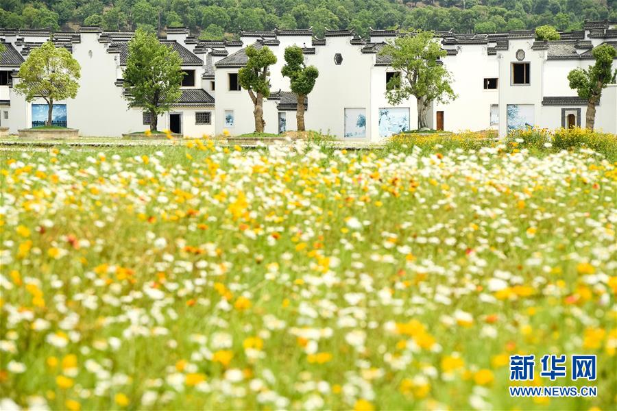 这是安徽黟县宏村风景区的古民居群(5月8日无人机拍摄)。