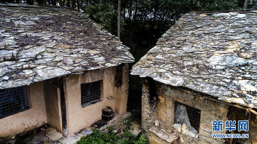 掩映在大山之中的石板房古村落,人去房空(8月7日无人机拍摄)。 新华社记者陶明摄