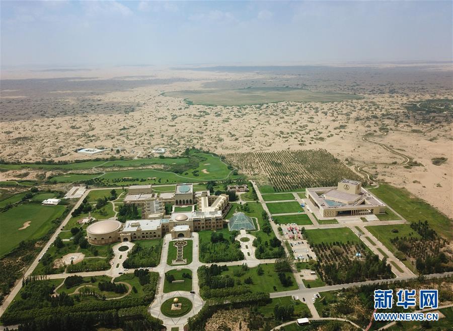 内蒙古鄂尔多斯市恩格贝生态旅游区(6月8日无人机拍摄)。 新华社记者彭源摄