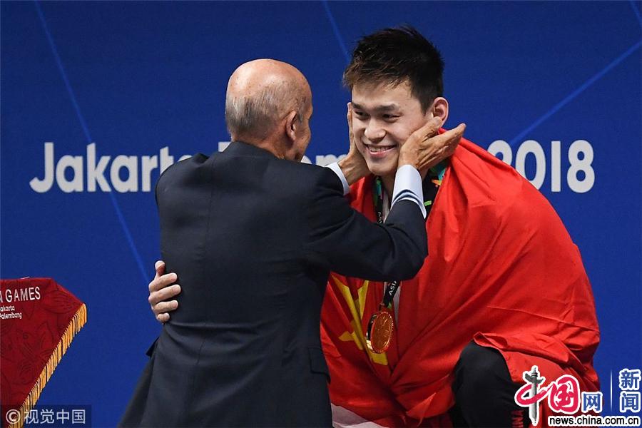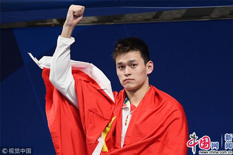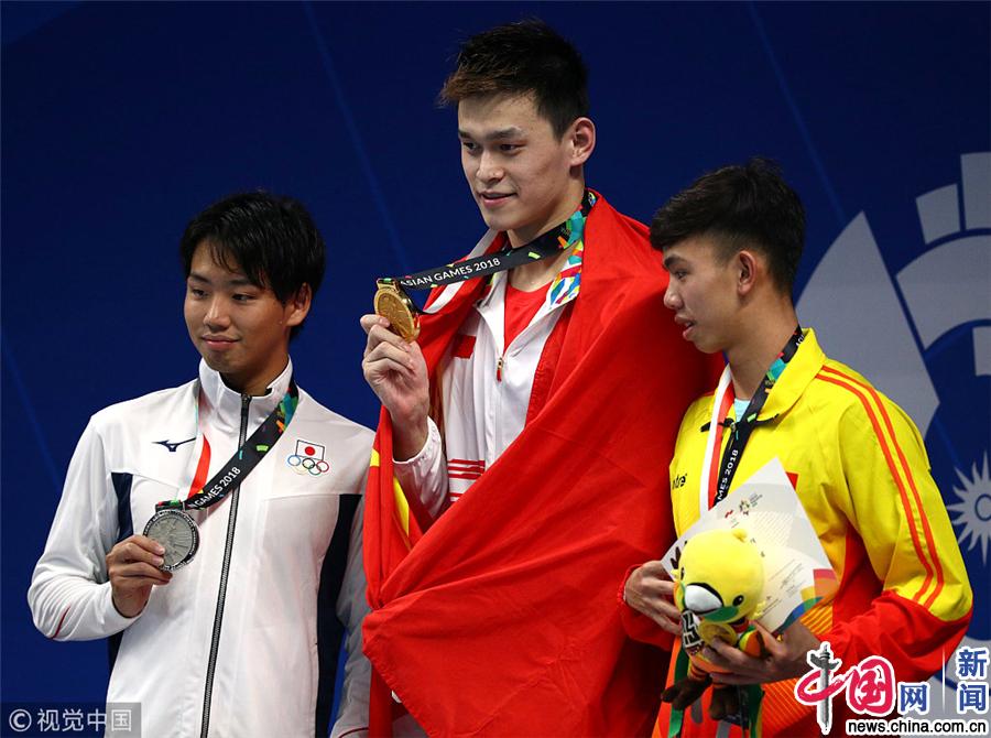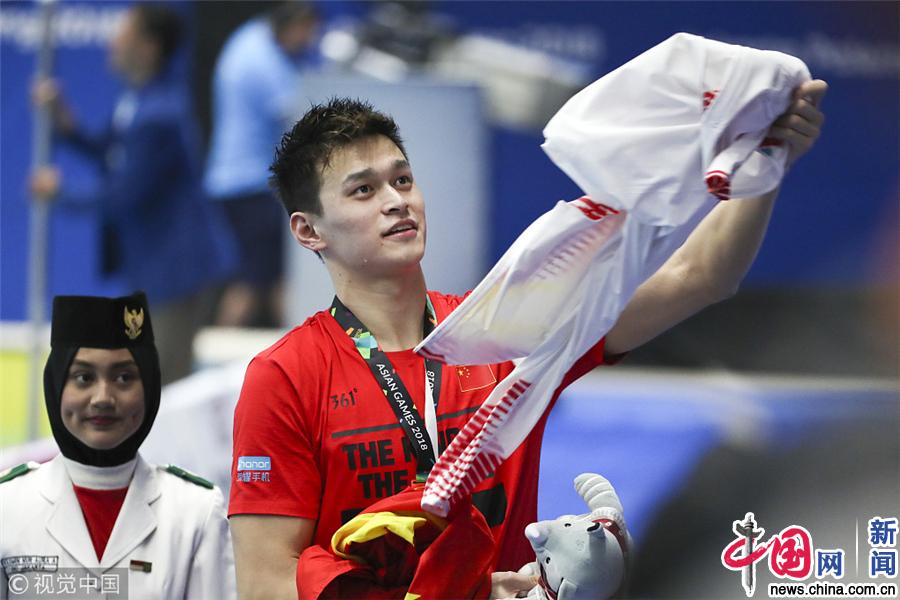 8月20日,印度尼西亚,2018雅加达亚运会男子800米自由泳决赛,孙杨夺冠。视觉中国