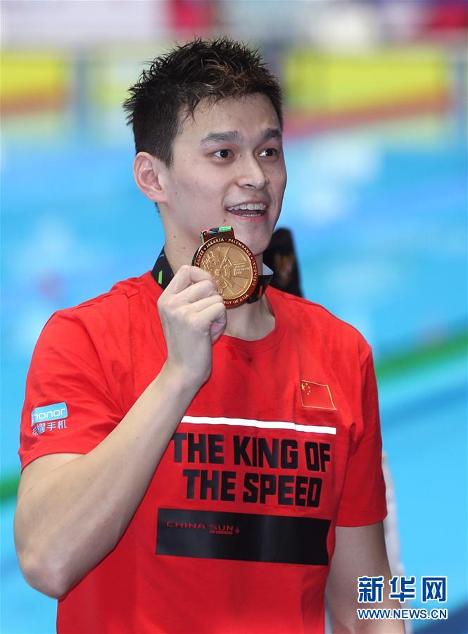新华社雅加达8月19日电(记者夏亮、周欣、杨汀)雅加达亚运会游泳比赛19日开赛,孙杨在男子200米自由泳比赛中以1分45秒43的成绩轻松摘金,并创造了历史——成为获得亚运会、世锦赛和奥运会男子200、400、1500米自由泳项目全部金牌的第一人,成就“金满贯”。
